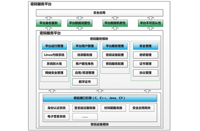 平台由密码接口引擎、密码设备管理、密码服务管理及用户管理、安全管理、运行管理等管理模块组成。